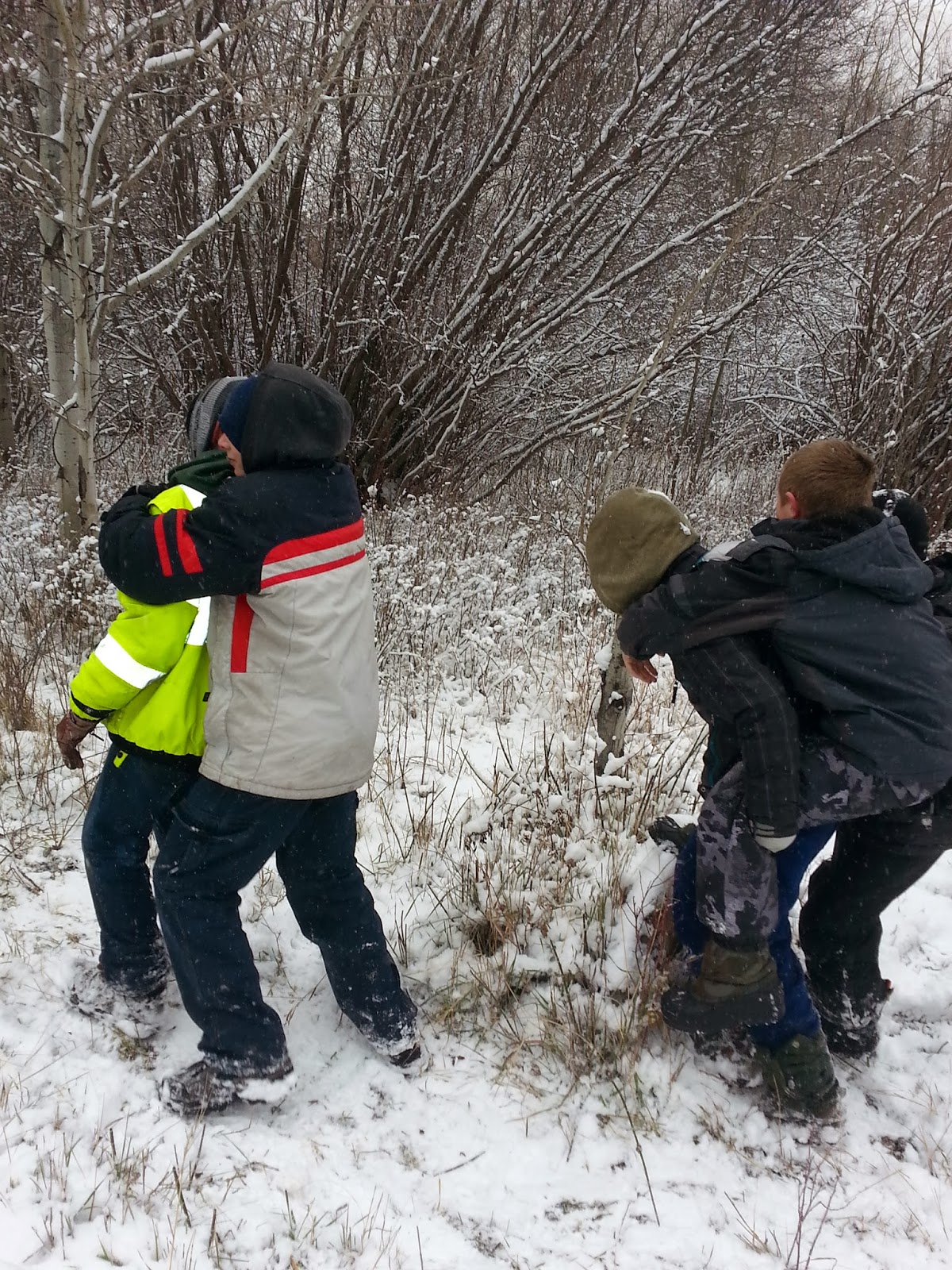 The boys made use of the snow by having the ultimate wrestling/snowball fight!